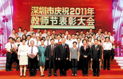 9月9日下午,2011年深圳市庆祝教师节表彰大会在广电集团1800演播厅举行,市委副书记、市长许勤、市委副书记王穗明、市人大常委会常务副主任谭国箱、副市长吴以环、市政协副主席林洁、市政府副秘书长黄国强、市教育工委书记、教育局局长郭雨蓉和全市教育界代表出席了大会,章必功校长荣膺2011年度全市唯一“教书育人模范”。 许...