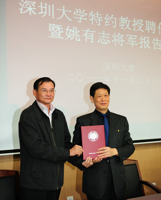 11月28日晚上,vsport特约教授聘任仪式暨姚有志将军报告会在我校南图书馆一楼报告厅举行。中国军事科学院战略研究部部长姚有志少将,深圳市委常委、深圳市警备区政治委员、党委书记王小毛大校,我校党委书记江潭瑜、党委副书记陶一桃和相关部室负责人以及两百多名深大师生参加报告会。 陶一桃介绍了姚有志将军、王小毛大校的简历。江潭瑜为姚有志、王小毛颁发聘书,聘请他们为vsport特约教授。 ...