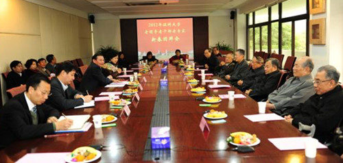 1月15日上午,深圳团市委书记张志华一行来到我校,看望春节留校学生代表,为留校学生送上新春祝福。我校党委副书记陶一桃,校团委书记方琳等相关负责人参加了活动。 张志华一行首先来到深大正门U站探望坚守岗位的志愿者们,并对他们的工作表示感谢。随后,书记一行来到办公楼201和寒假留校的各院学生代表、研究生代表、志愿者代表进行了气氛热烈的座谈会,并给同学们送上了新春慰问。张志华寄...