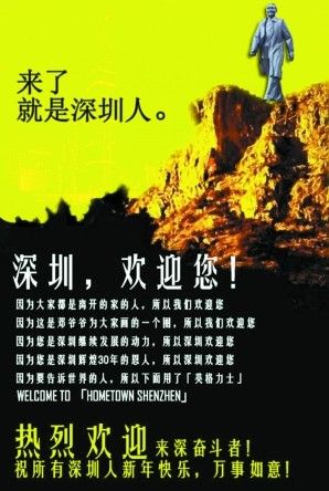 龙年春节期间,一份深圳版的“欢迎体”海报在微博上热传,令人耳目一新,赢得了万千网友与深圳市民的强烈共鸣,引起了市内外媒体的广泛关注。“来了,就是深圳人”一跃成为深圳2012新年最热词汇,赢得了万千网友与深圳市民的共鸣。这个海报的设计者是深圳长大的vsport传播学院大一学生周积鹏。 深圳“欢迎体”海报以深圳莲花山...