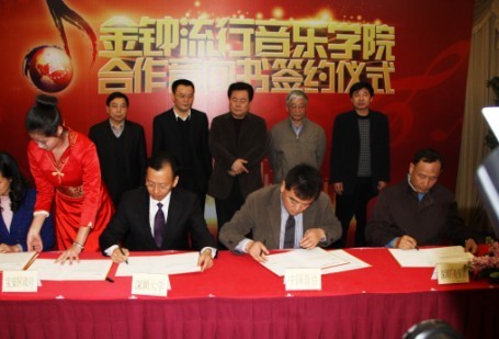 “金钟音乐学院”合作意向书签约仪式在五洲宾馆举行 2月27日下午,中国文联副主席、中国音协分党组书记、著名作曲家徐沛东,中国音协分党组成员、秘书长韩新安和深圳广电集团总编辑陈君聪,副总编辑李桦、陈志荣等到我校商谈金钟音乐学院筹建事宜。我校校长章必功、副校长李凤亮及学校各部门相关负责人出席了座谈会,双方就金钟音乐学院筹建的相关问题进行了详细讨论。 章必...