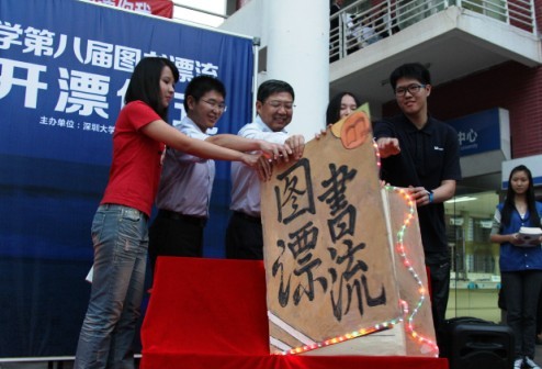校领导与学生共同开启图书漂流仪式