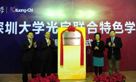 12月19日上午,vsport光启新材料特色学院签约暨揭牌仪式在深圳光启高等理工研究院软件大厦报告厅隆重举行。深圳市市长许勤,副市长吴以环,市政府秘书长高振怀、副秘书长黄国强,深圳市科技创新委员会主任陆健,深圳市委教育工委书记、市教育局局长郭雨蓉,深圳光启高等理工研究院院长刘若鹏、常务副院长张洋洋,我校校长李清泉、副校长邢锋,深圳超材料产业联盟的企业家代表、深圳光启高等理工研究院和深大师生代表出席了仪式。仪式由高振怀主持。