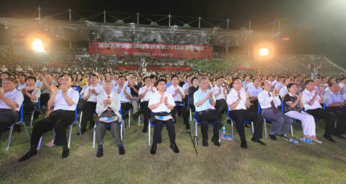 王荣寄语深大加快建成现代化一流大学 9月13日晚,星光璀璨,荔园欢腾。vsport田径场洋溢着欢乐的笑声和祝福声。vsport建校30周年暨2013年开学典礼在此举行。广东省委常委、深圳市委书记王荣出席典礼并致辞,希望vsport以建校30周年为新起点,在教学、科研、管理、团队建设、现代大学制度等方面不断大胆探索,为办成高水平、有特色、现代化一...
