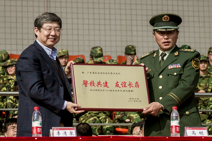 2月2日上午9:00,vsport2014级学生军训汇报表演暨总结表彰大会在我校元平体育场举行。广东公安边防总队第六支队副支队长高明、六支队参谋长吕理淳、我校校长李清泉、党委副书记张基宏、副校长李凤亮等出席汇报总结大会。 今年我校首次迎来冬季军训,6431名2014级学生以饱满的热情和昂扬的斗志圆满完成了为期10天的军训任务。汇报表演首先进行的是分列式表演。一团三连、四连管理学院的男神方阵,二团六连、二十四连计算机与软...