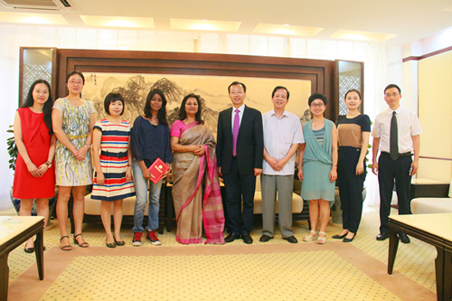 6月22日上午,李凤亮副校长会见印度文化关系委员会(ICCR)高级顾问、印度文化国际研究院的夏尔玛(Nirmala Sharma)教授和尼赫鲁大学交换生高丽婷(Bihu Ghosh)博士。印度研究中心和国际交流与合作部代表参与接待。 夏尔玛教授是印度著名艺术历史学家,曾于2011-2012年任ICCR讲席教授,在我校开设《印度佛教艺术》和《印度婆罗门教艺术》两门课程。她的著作《敦煌佛教绘画品(新德里国家博物馆藏)》首次将印度收藏的敦煌藏品...
