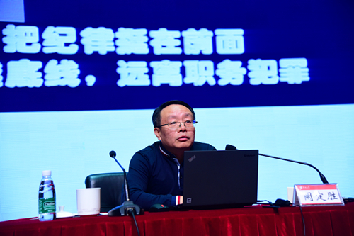 11月9日下午,我校2016年纪律教育学习月总结大会后,广东省教育纪工委书记阙定胜作题为“把纪律挺在前面,不越底线,远离职务犯罪”的廉政建设专题报告。市纪委派驻十一组组长林冰,校党委书记刘洪一等全体在家校领导及全体参会人员聆听了辅导报告。报告会由我校党委副书记、纪委书记陶一桃主持。 阙定胜结合自身工作经历和大量的详实案例,从纪律与职务犯罪的内涵;某些领域严重违纪违法现象(高校、医疗系统);违纪与职务犯...