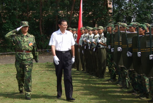 校领导分赴广州葵涌梅林阅兵 9月25日,我校2008级新生结束14天的军训生活。校领导江潭瑜、章必功、陶士平、李永华分赴广州广东国防训练教育基地、深圳葵涌预备役高射炮兵师五团基地、深圳梅林防化团检阅军训学生,并为先进个人、集体颁奖。 江潭瑜书记检阅军训一团学生 9月25日,我校2008级新生军训一团阅兵仪式在广东国防训练教育基地举行。校党委书记江潭瑜、...