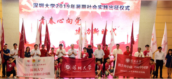7月12日上午,2019年暑期社会实践出征仪式在科技楼一号报告厅隆重举行。校领导刘洪一、李清泉、范志刚、卢成燕、徐晨、王晖、李永华、张学记,学校全体中层干部、师生代表等出席仪式。校团委书记殷涛主持仪式。 仪式上,校领导分别为经济学院、师范学院(教育学部)、传播学院、医学部、计算机与软件学院、建筑与城市规划学院、数学与统计学院、土木与交通工程学院、学生部等实践团队领队及学生代表授旗。 今年,为贯彻落实中...