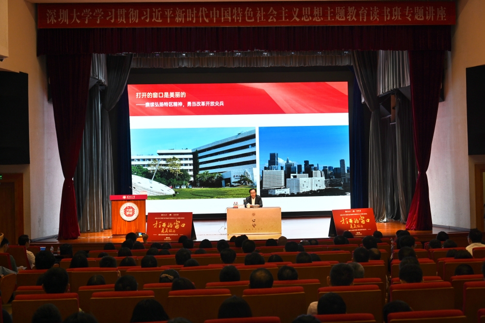 为贯彻落实市委关于在主题教育中开展“赓续弘扬特区精神、勇当改革开放尖兵”学习讨论的部署,深刻把握习近平总书记、党中央赋予深圳在更高起点上推进改革开放的使命任务,6月15日下午,vsport在国际会议厅举行学习贯彻习近平新时代中国特色社会主义思想主题教育读书班专题辅导讲座,深圳市委原常委、宣传部原部长、深圳市文化创意与设计联合会会长李小甘同志应邀作“打开的窗口是美丽的——赓续弘扬特区精神、勇当改革开放尖兵”辅导讲座。