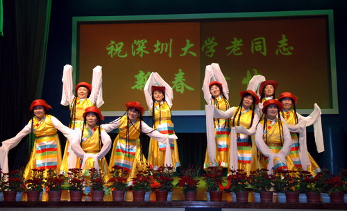 看电影、逛花市、新春游园会 、除夕嘉年华、欢天喜地看春晚……2009年寒假留校的1300多名深大师生,在一周的春节假期里,尽享丰盛的节日文化“大餐”。 为了让留校过年的师生也能感受家庭般的温暖与幸福,大年三十中午,校领导江潭瑜、陶一桃、阮双琛、邢锋、陈思平、李永华还专程回校,率有关处室和学院负责人、老师,与留校师生及部分学生家长欢聚一堂,共进除夕团圆饭,同祝牛年幸福安康。 “辞...