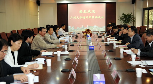 11月4日下午,广州大学调研团在党委书记易佐永、副校长禹奇才的带领下,围绕“高校的发展与‘十二五’规划的制定”,来我校调研,座谈会在办公楼201举行。我校党委书记江潭瑜、副校长李凤亮和党办、宣传部、科技处、教务处等部门负责人参加了座谈。 李凤亮介绍了在华东高校调研后的经验感受。他指出,华东地区高校高度重视“十二五”计划,起步比较早,其中苏州大学的计划已基本成型。起点高,定位明确,...