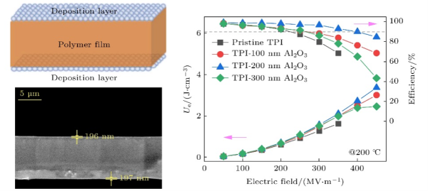 图2. 采用物理气相沉积(PVD)技术制备的有机/无机三明治结构Al2O3/TPI/Al2O3高温电容薄膜的结构与性能。