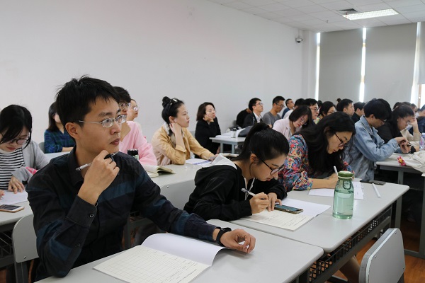11月19日上午,第二场教学观摩课是由人文学院宫钦第老师主讲的《古代汉语》,本节课的主要内容为代词。宫老师在课堂上首先带领大家学习古文字的练习,他用 “儿”字举例,从甲骨文到金文,再到小篆,如小儿头颅未合之形,十分形象。课前热身之后,本节课的主角出现,即代词。宫老师先讲解了代词的分类,在人称代词中,宫老师让会说客家话的同学来展示当地的方言,因为一些南方的方言的很多保留了上古汉语的特点,其中北方的一些方言也有留存,用方言的举例使语言更加具有生活性与趣味性,在场的各位青年教师都全神贯注的听讲,感受到了古代汉语的无穷魅力。