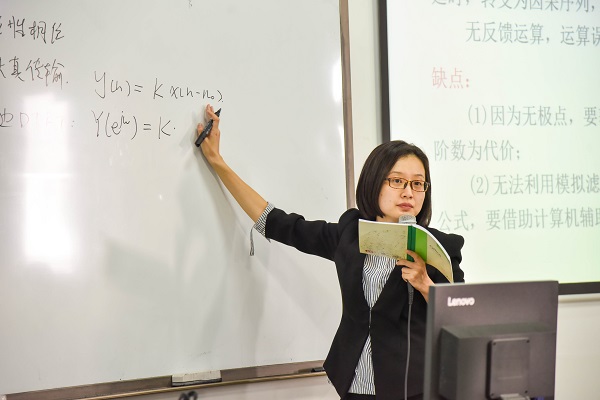 11月20日下午,第五场教学观摩课是医学部丁惠君老师的《医学数字信号处理》,本课堂的主讲内容是FIR数字滤波器的设计。丁老师以对上一章内容简单回顾的方式,引入到本课堂的重点内容。为了加深学生对核心概念的理解,丁老师通过公式推导,核心概念公式对比等方式,抽丝剥茧,一步步引导学生对核心定义的领悟。最后,丁老师以课堂例题的形式,进一步强化学生对重难点知识的理解。丁老师语言亲切、仪态自然、授课思路清晰、逻辑性强、重难点突出、课堂气氛好、师生互动频繁。