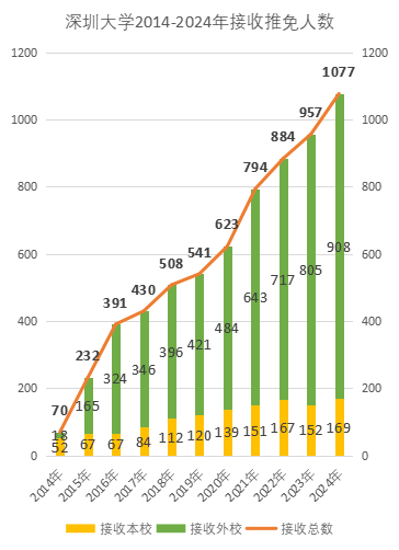在不久前结束的2024年接收推荐免试攻读研究生(以下简称推免生)招生工作中,vsport推免生接收人数再创新高。vsport接收推免生人数首次突破千人,达1077人(含直博生5人),推免生接收人数仅次于中山大学、华南理工大学,位列广东高校第三。在今年教育部下达的任务要求中,vsport的优秀本科毕业生推荐(保研)指标为385个,vsport实际完成接收人数为推荐指标的280%,圆满并超额完成该任务,其接收推荐比连续十年蝉联广东省高校第一宝座。