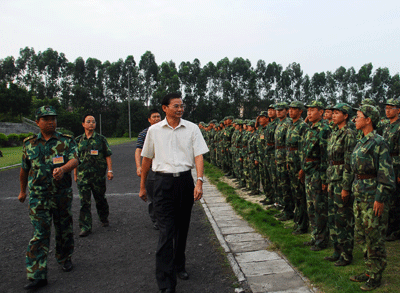 汇报大会结束后,江书记一行深入各个连,仔细了解学生七天来的训练及生活情况。随后又视察了饭堂、师史馆、射击馆。