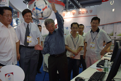 10月16日上午,章必功校长到我校高交会展区视察,科研处领导介绍了本次参展的总体概况和目前的成交情况,各项目负责人向章校长介绍了每个参展项目,章校长一一询问了项目的科技含量、应用前景和进展情况,并饶有兴致地参与了部分参展项目的互动。