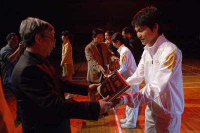 奏唱国歌后,充满青春活力的啦啦队表演和交谊舞表演使现场师生陶醉其中,掌声一次一次随着音乐节拍响起。章必功校长和可口可乐公司负责人为我校北京2008火炬护跑手颁发奖牌。