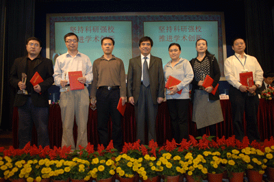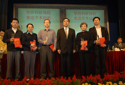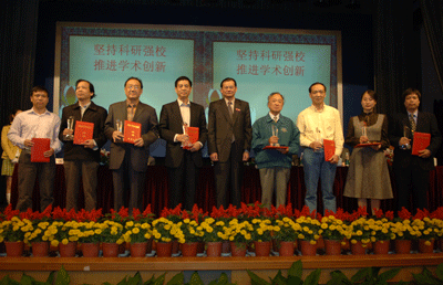陈思平副校长宣读了学校关于科学研究奖励表彰的决定。江潭瑜书记、章必功校长、陶士平副书记、倪嘉缵院士和谢维信主任为获奖代表颁奖。
