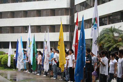章必功首先致辞。他怀着沉痛的心情,低沉地说,今天,公元2008年5月19日早晨,泪雨纷飞,举国哀悼。深大师生在庄严的升旗仪式上,向大地震中的遇难者遥寄哀思。逝者已逝,我们祈祷遇难者安息;生者尽力,我们发誓万众一心,抗震救灾,为灾区人民贡献自己的力量。他号召,全体师生肃立,向遇难者默哀。