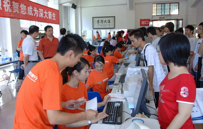 在整个迎新过程中,各学院以及校学生会学生干部始终不辞辛劳地为新生入学服务。他们饱满的热情和灿烂的笑容体现了深大人团结、友爱、合作的精神。