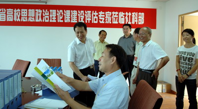 评估组专家们首先来到社科部“德育情景教学模拟实验室”,观摩了我校所开发的Flash教学软件并亲自参与了软件的操作。评估组还认真审核了我校提交的思想政治理论课建设材、教学原始资料,仔细了解了我校思想政治理论课建设情况的情况,就我校的学科建设、学科优势、科研成果等方面的情况与社科部的教师进行了交流,并充分肯定了我校思想政治理论课建设的快速发展和近年来所取得的科研成果。