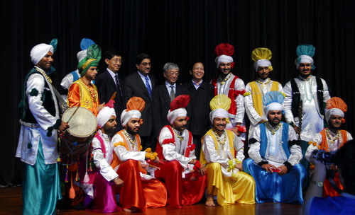 邦格拉舞是起源于印度西北部旁遮普地区的传统民族音乐及舞蹈。旁遮普地区是印度古代文明的重要发源地之一,同时也是现代文化的摇篮。当晚由13名印度舞蹈家为现场观众带来了民族管弦乐、民族歌曲、俱玛尔舞蹈、马尔威吉达舞、邦格拉舞蹈等8个极富民族特色的演出。我校艺术系学生同台献艺,为观众表演了傣族双人舞《修》和独舞《花腰红》。