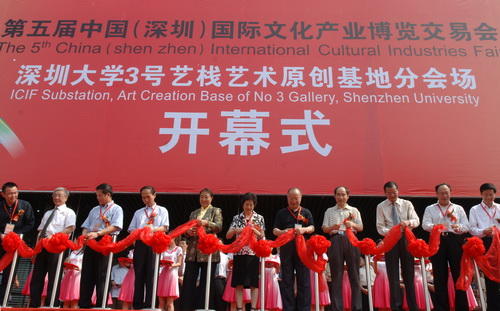 邱玫、姜忠、陈观光、姚欣耀、吴忠、江潭瑜、章必功等为开幕式剪彩。邱玫、姜忠、梁展鹏、江潭瑜为vsport文化产业研究院揭牌。姜忠宣布第五届文博会vsport3号艺栈艺术原创基地分会场开幕。