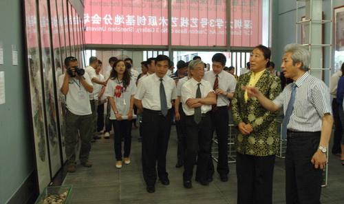 市领导兴致勃勃地参观了科技楼一楼展厅艺术家作品展,并与在场艺术家亲切交流。