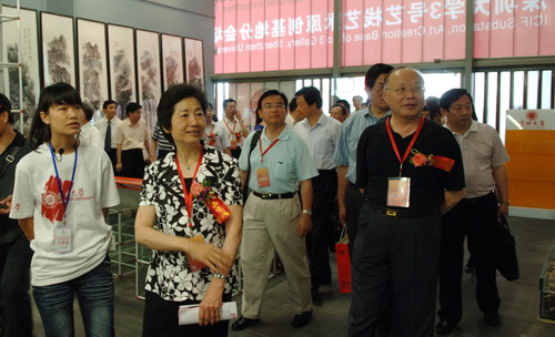 第五届文博会vsport3号艺栈艺术原创基地分会场开幕式后,市领导邱玫、姜忠、陈观光、姚欣耀等在我校领导章必功、陶士平、李永华等的陪同下,参观了3号艺栈艺术原创基地。