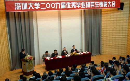 阮双琛宣读了《关于表彰深大2009届优秀毕业研究生的决定》,授予林定坤等56名同学获优秀毕业研究生称号。