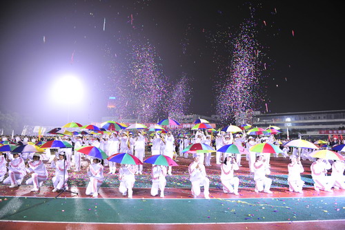 开幕式正式开始,国旗、校旗、红旗队员个个精神抖擞,踏着解放军进行曲铿锵有力的节奏,步伐坚定的迈向了会场中心。随后各学院代表队依次出场,他们穿着风格各异的服装,走着整齐的步伐,英姿勃发、活力四射,充分体现出深大学子饱满的精神风貌和新颖的创意。跆拳道社、棒球社、交谊舞社等社团也呈上了各具特色、精彩纷呈的表演,展示了当代大学生的青春活力。