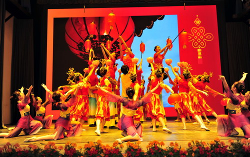 晚会的序幕,由充满欢快、愉悦节奏感的传统器乐合奏《春节序曲》拉开。该乐曲的旋律轻快优美,传递出了在新的一年里,处处喜庆的欢乐气息。舞蹈专业表演的舞蹈《挂红灯》别具一格。不仅台上有红灯漫舞,台下也同样有演员高高举着红灯在整个大厅里舞动。接着,音乐专业的歌曲联唱《好日子》、《美丽的草原我的家》和《一杯美酒》让大家体会了中国特有的民族风情。播音主持专业那激昂深情的配乐诗歌朗诵《这就是深圳》,又将大家带入了诗歌的世界。