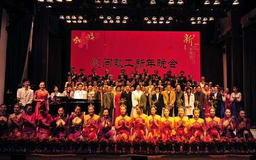 除旧迎新,欢歌载舞。为感谢荔园园丁们一年来的辛勤劳作,由师范学院主办、师范学院艺术系承办的“慰问教工新年晚会”12月29日晚在国际会议厅举行。校领导章必功、陈思平、李凤亮和各学院领导及部分教工代表欢聚一堂,共同欣赏晚会。