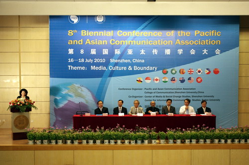 7月16日至18日,亚洲-太平洋传播学会大会在我校举行。会议期间,来自马来西亚、韩国、中国、美国、菲律宾、印度、印度尼西亚、文莱、澳大利亚、格鲁尼亚、加拿大、孟加拉、巴西、斯里兰卡、英国、尼泊尔等国家以及中国台湾、香港、澳门等地区的传播学者提交了141篇论文,并围绕传媒与文化的共融,亚太地区的大众传播,网络和新媒体,亚太经济发展、城市化、移民文化与传媒作用等19个议题展开了深入讨论。
