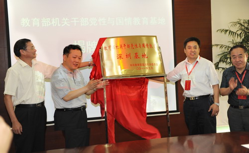 5月21日上午,“教育部机关干部党性与国情教育基地”在我校揭牌。教育部机关党委常务副书记吕玉刚,语文出版社部编辑王晓庆,广东省委教育工委副书记、省教育厅党组副书记景李虎和我校党委书记江潭瑜共同为基地揭牌。