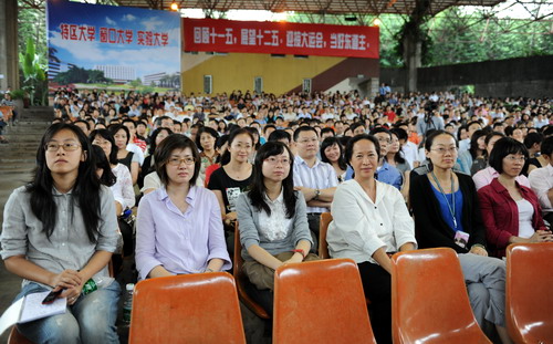 “回顾十一五,展望十二五,迎接大运会,当好东道主”。5月25日下午,我校在演会中心召开全校教职工大会,全面总结“十一五”成绩,表彰“十一五”期间教学科研与学科建设领域成绩突出个人和集体,布局“十二五”规划。校领导江潭瑜、章必功、邢苗、陶士平、陶一桃、阮双琛、邢锋、李永华参加了大会。