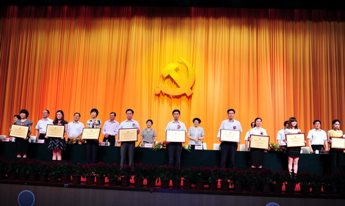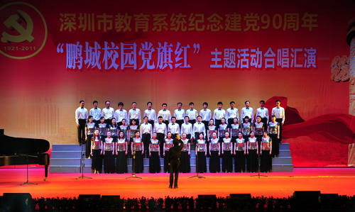 6月22日下午,深圳市委教育工委庆祝中国共产党成立90周年大会在市民中心举行,市委副书记王穗明出席会议并为教育系统优秀党员和优秀党务工作者代表颁奖。我校领导江潭瑜、陶一桃,相关部室、学院负责人,先进基层党组织、优秀党员和党务工作者代表及参加“鹏城校园党旗红”主题汇演的教师合唱团成员出席活动。