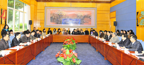 2月27日下午,中国文联副主席、中国音协分党组书记、著名作曲家徐沛东,中国音协分党组成员、秘书长韩新安和深圳广电集团总编辑陈君聪,副总编辑李桦、陈志荣等到我校商谈金钟音乐学院筹建事宜。我校校长章必功、副校长李凤亮及学校各部门相关负责人出席了座谈会,双方就金钟音乐学院筹建的相关问题进行了详细讨论。