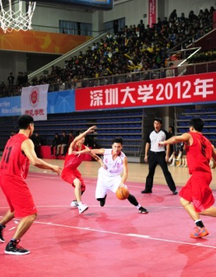 李清泉校长开球后,白、红两队队员展开了激烈的争夺。默契的合作,娴熟的技能,广州大学队用一个三分远投拔得头筹。深大篮球队一开场比分稍稍落后,但教练给队员们调整战术后很快便进入状态,抢球、传球、助攻、远投三分,深大队员之间的配合熟练,发挥良好,很快追上了比分,并以领先优势结束了第一节比赛。中场休息后,双方调整了阵容和战术,比赛更加激烈,队员们每一次激烈的争球都引发了现场观众的一阵阵欢呼,每次双方得分深大的师生都会奉上热烈的掌声和助威的呐喊。最终,深大以93比73赢得了本次比赛。