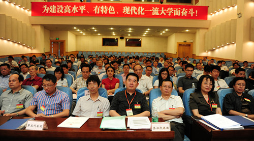 江潭瑜希望各位代表在大会闭幕后,认真贯彻大会精神,带头执行大会决议,把大会部署的各项任务分解、贯彻落实到本单位的各项工作中去,形成与学校改革发展目标相一致的具体方案,带动全校师生员工,团结和谐,振奋精神,扎实工作,为推动学校各项事业科学发展做出新贡献。