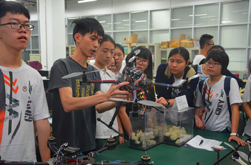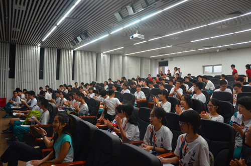 当天下午,“格致班”分成两组分别参观了高等研究院、计算机与软件学院和文博会深大荔园分会场、机电与控制工程学院。在高等研究院,学院的老师们为到来的同学们精心准备了一场前沿科技的饕餮盛宴。首先,韩志超院长致欢迎辞,并介绍了高等研究院的发展情况;潘科教授和Derek教授则介绍了学院的各个专业方向及各自科研项目的研究情况;韦阳博士则详细地描述了高等研究院极具特色的培养机制。在场的同学们都被学院这种交叉性、前沿性、拔尖性的人才培养特色所深深吸引。接着,同学们在老师的带领下参观了金融实验室、中央实验室、PCR技术演示和显微镜实验室,各种先进仪器令同学们大开眼界。在计算机与软件学院,同学们参观了云计算机智能服务中心、国家教学实验室和大数据实验室。最后,学院毛睿副院长还专门为同学们开了一场小讲座,介绍了学院的师资力量和科研水平,并和大家一起探讨我国计算机的发展现状。他风趣幽默而又极具见地的语言赢得了同学们的阵阵掌声。在文博会深大荔园分会场,同学们被琳琅满目的创意产品所吸引,并加入了互动:成群的男生在虚拟现实技术的游戏互动区域玩得不亦乐乎,不少女生则专注地盯着3D打印机的运作,不时地询问摊位负责人相关原理。而在机电与控制工程学院,同学们还参与了PPCNC(个人便携式数控机床)的使用体验,观看了VR(虚拟现实)展示城市轨道交通的运行以及RoboPilots俱乐部的机器人比赛模拟赛场。