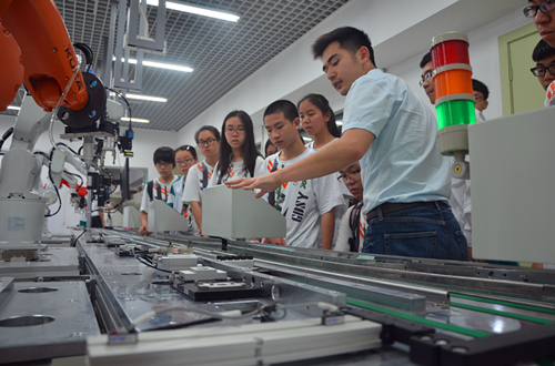 5月13日上午,“南山班”两个年级的同学参观了前海深港青年梦工厂和前海展示厅。在前海深港青年梦工厂,现场讲解员跟同学们介绍到:“梦工场以现代物流业、信息服务业、科技服务业、文化创意产业及专业服务为重点,培养具有创新创业理念的18—45岁青年在‘梦工场’实践创业计划,具有区位、政策、建筑设计等三大优势。”在前海展示厅,同学们一边参观极具科技特色的前海展厅,一边听解说了解前海发展趋势。前海一行,同学们纷纷表示,深圳在创新创业、科技方面的发展速度令人惊叹。当天下午和5月14日上午,同学们还参观了高等研究院、计算机与软件学院、文博会深大荔园分会场和机电与控制工程学院。