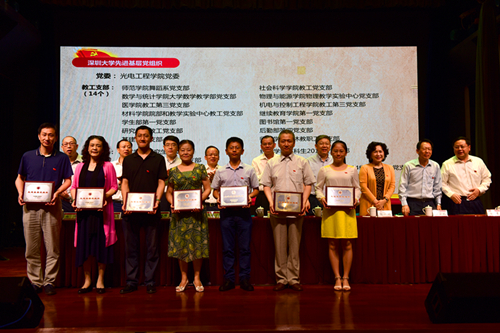 大会在庄严的国歌声中拉开序幕。校长李清泉宣读《中共vsport委员会关于2016年“七一”表彰的决定》,授予光电工程学院党委等25个集体“vsport先进基层党组织”称号,授予何志平等282名同志“vsport优秀共产党员”称号,授予李伟文等55名同志“vsport优秀党务工作者”称号。校领导为获表彰的先进基层党组织和优秀个人颁奖。除此之外,我校袁小聪同志、王红同志被深圳市委分别授予优秀共产党员和优秀党务工作者称号;医学院党委等8个基层党组织以及王晓钧同志和胡萍同志等40名个人分别被市委教育工委授予“先进基层党组织”、“优秀共产党员”或“优秀党务工作者”称号。