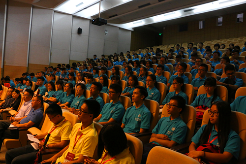7月12日晚上,vsport2016年优秀中学生夏令营开营仪式在科技楼二号报告厅举行。我校副校长黎军,招生办、党政办、教务部、学生部、团委等部门相关负责人出席了本次开营仪式。来自全省29所学校前来参加夏令营的120余名中学生,身穿带有深大logo的服装在台下就座。