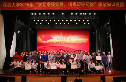 本次廉政教育知识竞赛紧紧围绕“学党章强党性,讲规矩守纪律”的教育主题,结合“两学一做”学习教育,通过在全校开展知识竞赛活动,提高廉政诚信意识,营造浓郁的校园廉政文化氛围。共有来自法学院、生命与海洋科学学院、土木工程学院、电子与科学技术学院、信息工程学院、师范学院、材料学院、心理与社会学院、经济学院、建筑与城市规划学院、数学与统计学院、机电与控制工程学院十二个学院的代表队参赛。历时2个小时的比赛包含必答题、抢答题、判断题、选择题等多种多样的题目形式,诙谐幽默的主持人加上观众同学们积极的互动参与让会场气氛相当热烈。最终经过激烈角逐和脑力厮杀,来自法学院的“律政强人队”实力摘得本次廉政知识竞赛的一等奖,机电与控制工程学院、生命与海洋科学学院、电子科学与技术学院3支代表队获得二等奖,土木工程学院、师范学院、材料学院、心理与社会学院、经济学院、建筑与城市规划学院、数学与统计学院、信息工程学院8支参赛队伍获得三等奖。