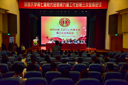 李清泉向大会作《校长工作报告》。他从八个方面回顾了学校2016年的工作进展:一、高水平大学建设取得阶段成果。我校顺利通过了广东省高水平大学建设绩效评估,高水平大学建设进展迅速,在学科、科研的多项关键指标上,提前一年且超额完成高水平大学建设第一阶段目标。二、深化本科教育教学改革,培养高素质创新创业人才。启动2017级本科人才培养方案修订,推动公共课改革;创新创业教育成效显著,形成较完整的创新创业教育体系;启动了审核评估工作,推动了专业认证;我校发起成立的全国高校UOOC联盟不断发展壮大,成员高达107所,上线课程106门,社会影响不断扩大。三、深化人事改革和人事管理创新,提高教师队伍整体水平。实施特聘和预聘—长聘制,规范和完善了人事管理制度。2016年全职引进特聘教授32人,其中院士3人、国家杰青8人,**学者2人、国家优青5人、其他6人。四、推动科研创新,提升科研水平与贡献。国家自然科学基金立项208项,立项数排名全国第33名,广东第4名;国家社科基金立项23项,居省内高校第3位,重点项目立项数列全国高校第13位。五、加快推进学科建设,提高研究生培养质量。启动了学科调整和评估,学科竞争力显著提升,3个学科进入ESI学科世界排名前1%;接收2017级推免生430人,推免生接收/推荐比继续保持广东高校第一;增设“生物医学信息处理”、“制度创新与文化创意经济”两个目录外二级学科博士点。六、实施国际化行动计划,国际化程度明显提高。与194所国(境)外大学建立了校际联系与合作,与90余所院校开展学生学习交流。七、加强学生工作和校园文化建设,实现全程全方位育人。八、加强办学资源建设,提升办学条件与管理水平。