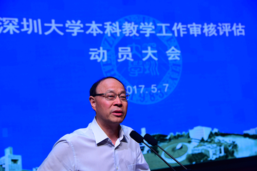 副校长王晖在大会上介绍了本科教学工作审核评估概要,并提出了审核评估期间工作要点。审核评估的核心是对学校人才培养目标的培养效果进行评价,学校提供基于数据和事实的证据,证明人才培养各个环节目标的实现情况及其培养目标和质量标准的吻合程度。审核评估的目的是帮助学校自己用尺子量自己,重点审核五个“度”:人才培养目标与培养效果达成度;办学定位和人才培养目标与社会需求的适应度;领导精力、经费投入、教师和教学资源对学校人才培养的保障度;教学和质量保障体系运行的有效度;学生和用人单位的满意度。审核评估的范围指标包括7个项目、24个审核要素、66个审核要点。他着重介绍了审核项目中的7个指标,包括6个一级指标:定位与目标、师资队伍、教学资源、培养过程、学生发展、质量保证,1个特色项目是UOOC(优课)联盟。王晖强调,各单位要按照“工作指引”做好迎评准备工作,认真学习自评报告等材料;配合做好专家进校后的各项考察工作,熟悉工作流程和要求;各教学单位要充分展示自己的特色,各职能部门要充分展示对教学工作的支持,熟悉相关的数据。他希望全体师生立即行动起来,上下一心、团结协作、扎扎实实做好审核评估的各项工作,为圆满完成审核评估、推动学校综合改革做出新的更大贡献。