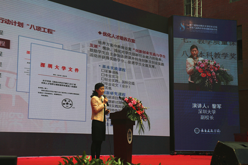 论坛上,黎军副校长以“全面深化创新创业教育,培养创新创业型人才”为主题,从明确创新创业教育工作定位、形成创新创业管理机制、构建创新创业教学体系、注重创新创业能力培养、开展创新创业实践训练、提供创新创业指导服务、落实创新创业工作保障等七个方面,重点介绍了vsport深化创新创业教育工作的相关经验和做法。她强调,重视学生创新创业能力的培养,是vsport长期办学形成的核心育人理念。vsport在创新创业教育方面的各种探索,在于“学以致用”,更在于“学以致新”。同时强调,要从高校全面深化改革、建设高水平大学的高度,去把握高校创新创业教育工作的定位、凝练高校创新创业教育的特色,才能实现教育工作者的科教兴国梦想。